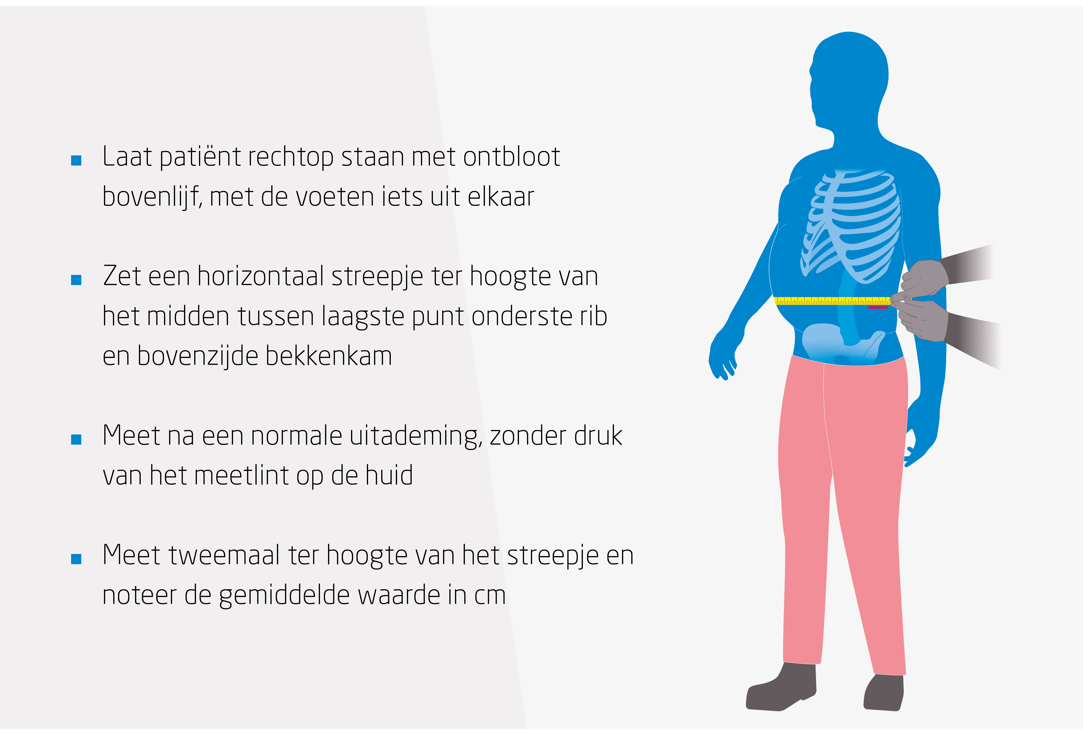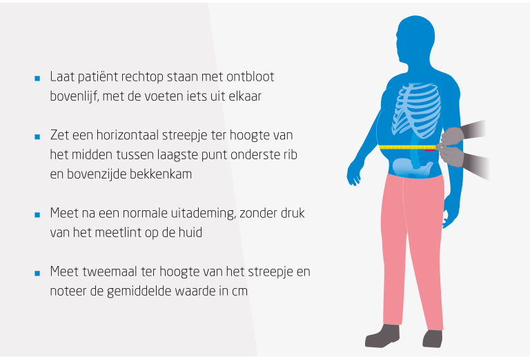- ernstig vergrote buikomvang: vrouwen ≥ 88 cm; mannen ≥ 102 cm