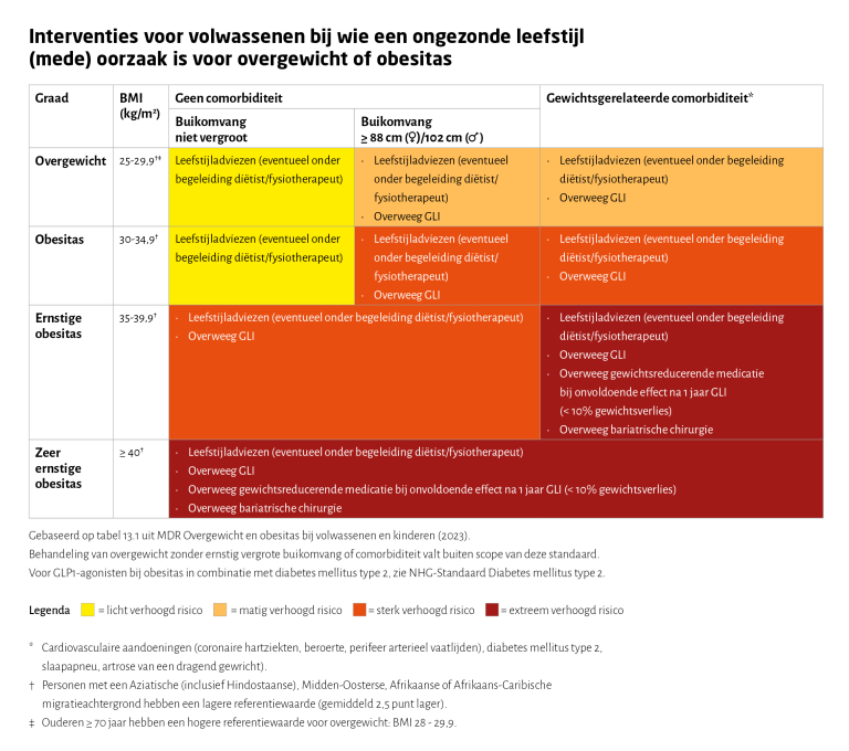 - Voor sommige niet-westerse achtergronden gelden andere referentiewaarden (BMI, buikomvang), zie volledige tekst.
