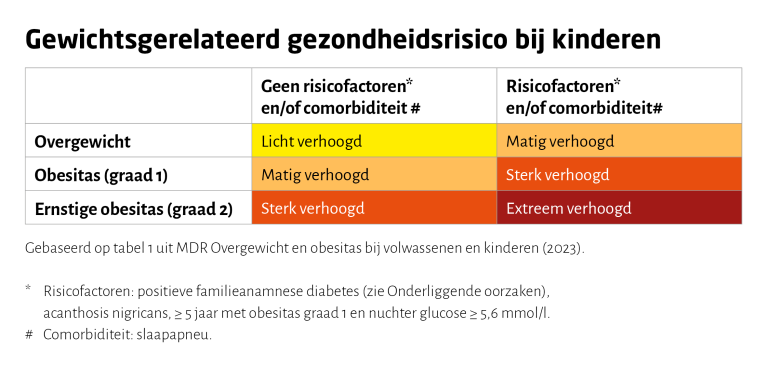 - overgewicht of obesitas (graad 1) met risicofactoren en/of comorbiditeit die diagnose en behandeling in de tweede lijn vereisen: obstructief slaapapneu, acanthosis nigricans, nuchter glucose ≥ 5,6 mmol/l