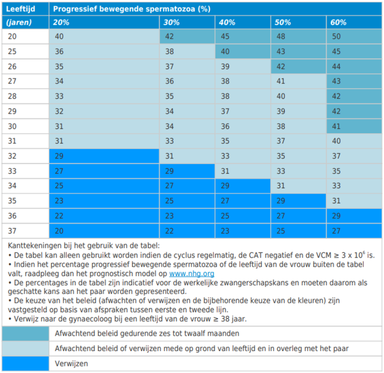 Afwachtend beleid of verwijzen mede op grond van leeftijd en in overleg met het paar | |||||